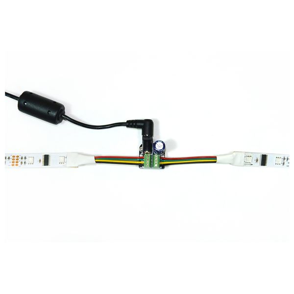 正方形)のアクセサリボードで、長いLEDランの電源を簡単に接続できます。長いストリップでは電圧降下が発生するため、5m または5A のいずれか早い方の間隔で電源を注入することをお勧めします。