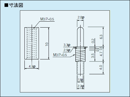 ・材質 :ピン部:黄銅 樹脂部:アセタールコポリマー(UL94HB)
