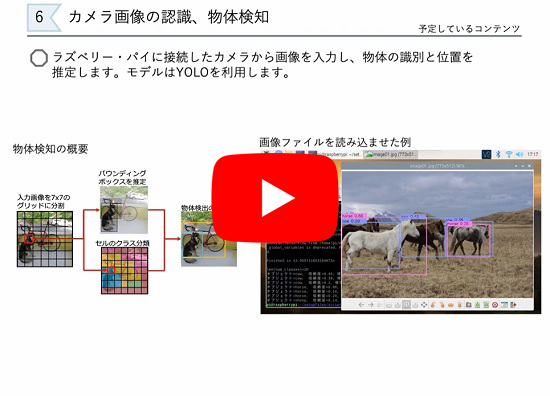 本セミナでは,エッジ側をラズベリー・パイとしたAIの実装について学びます. AIの実装方法として,学習と推論までをエッジ側で行う方法と,学習済みモデルをエッジ側に導入して推論を行う方法について学びます.