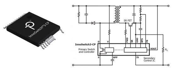InnoSwitchには、PowiGaNとFluxLinkというPower Integrations社独自の技術が採用されています。PowiGaNはSiの代わりにGaNをスイッチ素子に使用し、全負荷範囲で最大95%の効率と、密閉型アダプタの実装で最大100Wをヒートシンクなしに実現できます。 FluxLinkは、1次側と2次側を磁束によりフィードバックする技術です。磁気による接続なので、絶縁にフォトカプラを使用する必要がなく部品点数を減らすことができ、経年変化による劣化も避けられます。FluxLinkは高速な負荷過渡応答が可能で、世界のあらゆるノイズイミュニティ規格にも対応しています。 InnoSwitchには用途により異なるファミリがあります。例えば、InnoSwitch3-CPはバッテリー充電器などの民生用で、InnoSwitch3-EPはオープンフレームAC/DC電源などの産業用、InnoSwitch3-ProはI2Cインターフェースを備えソフトウェアで制御する機器用となっています。