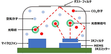 マルツエレックでは、皆さまの「ものづくり」にお役立ていただくために様々な技術情報を こちらのWebページで公開しています。是非、参考にしてください。 今回、この技術情報ページに「Groveで直結!新定番センサSCD41で作るCO2&温湿度計【すぐ動く!M5Stack用サンプル・プログラム公開】」という解説記事を追加しましたのでご紹介します。これは、先に公開した「 高精度!超定番センサSCD30で作るCO2&温湿度計」に続く解説記事です。 現在、新型コロナウイルスへの感染を防止するために、密状態を避けたり換気を行う目的で二酸化炭素濃度を検出することが求められています。CO2を検出するには、一般的にNDIR(非分散型赤外線吸収)方式が採用されています。NDIR方式は大気中に赤外線を照射して、CO2が吸収することによる赤外線の減少量を測定するものです。この方式は、ある程度の赤外線のビーム経路が必要で小型化するには限界がありました。 そこでセンシリオン社は、光音響効果を用いてCO2センサの小型化を実現しました。ウィキペディアによると、光音響効果は光エネルギーを吸収した分子が熱を放出し、その熱による体積膨張により音響波(疎密波)を発生する現象で、1880年にグラハム・ベルによって発見されたということです。光音響効果によるCO2の検出は実験室レベルでは実用化されていましたが、一般的なCO2センサとしては実現できませんでした。 センシリオン社は、金属酸化物ベースのセンサを周辺回路と合わせてCMOSシリコンチップ上に作り込むCMOSensという技術とCMOSensプラットフォームを光音響センサの原理と組み合わせるPASensという技術を開発し、CO2センサを小型化することに成功しました。