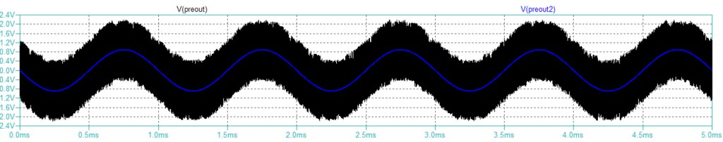 例えば、LT1028をLV-2.0の回路のまま使用するとどうなるか、シミュレーションしてみました。