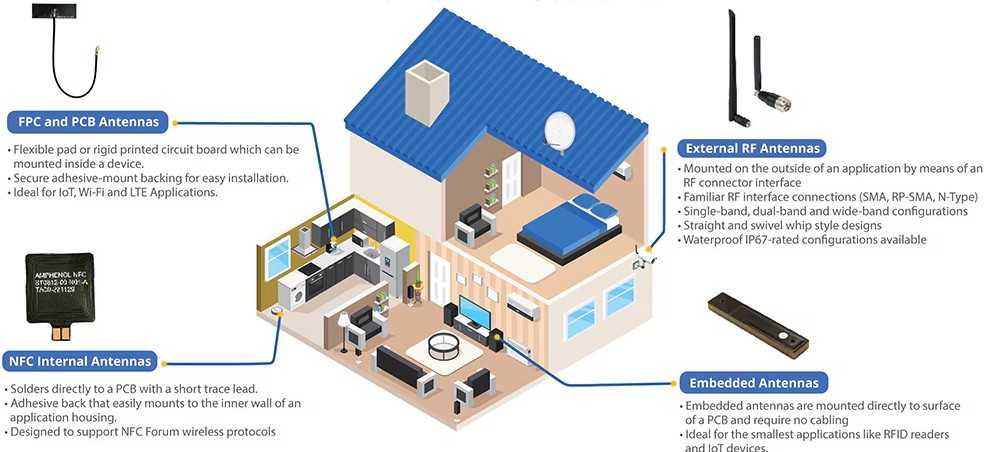 図4:さまざまなIoTアプリケーションに対応する各種アンテナ。(画像提供:Amphenol)