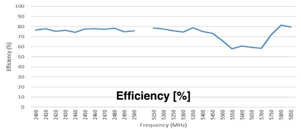 図5:ST0224-10-401-A Wi-Fi PCBトレースアンテナは、2.4GHz帯と5GHz帯の両方で効率的に動作します。(画像提供:Amphenol)