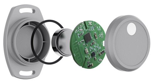 図2:L02S-BCNスマートビーコンは、IP67対応の筐体にBLE接続機能、複数のセンシングオプション、高視認性LED、現場で交換可能なバッテリを搭載しています。(画像提供:Blecon LTD)