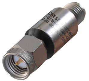 代表的な例はSQA-0182-01-SMA-02です(図4)。この1dBアッテネータは、DC~18GHz性能、2W平均電力処理能力(500W、ピーク)、動作温度範囲-55℃~+125℃を特長としています。