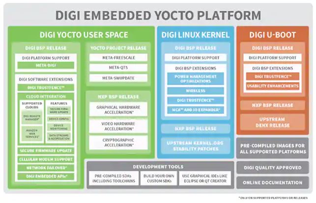 図5:Digi Embedded Yoctoは、Digiハードウェア用ボードサポートパッケージ(BSP)拡張でベースラインYocto Project Linuxディストリビューションを拡張します。(画像提供:Digi)
