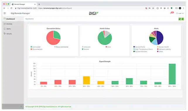 モバイルアプリやデスクトップソフトウェアにより、開発者はDigi Remote Managerを使用して、フリートヘルス、アラート、接続ステータス、信号強度を含むデバイスフリート動作の詳細を表示できます(図6)。