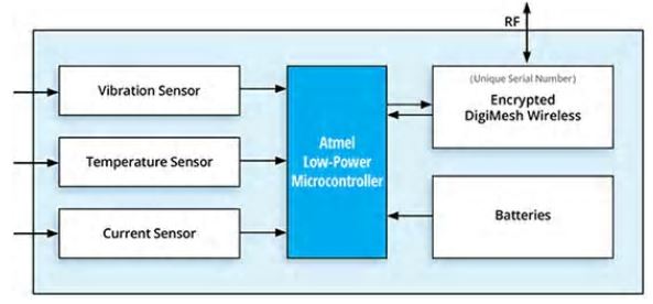 予知保全の手法では、機器の故障につながる予兆的な特性を監視します。たとえばモータの場合、振動周波数と温度の特定の変化は、モータに固有の故障を高い確度で示します。このデータを捕捉するように設計されたIIoTセンサには、たとえばNational Control Devices(NCD)PR55-20A予知保全センサなどがあり、このシステムでは必要なセンサと低電力マイクロコントローラ、DigiMeshワイヤレスメッシュネットワークコネクティビティを組み合わせています(図1)。