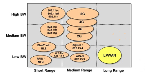 ゼロから独自のワイヤレスインターフェースを設計した場合、コストの増加や開発の遅れの可能性があり、さらには作業のやり直しを招く可能性もあるので、各種の比較的新しい低電力ワイドエリアネットワーク(LPWAN)向けの出来合いのモジュールを使うことも考えられます。