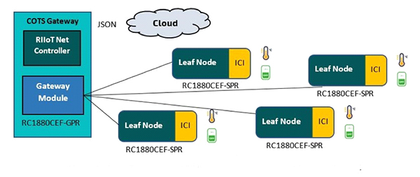 RC1880-RIIOT-DKなどの開発キットを使うと、実験用にエンドツーエンドの完全なRIIoTネットワークを迅速にセットアップすることができます。このキットには、完全なネットワークを構築するためのリーフノード、ゲートウェイモジュール、システムソフトウェアが含まれています。また、リーフノードでの接続センサの処理をCでプログラミングするためのソフトウェアツールも含まれています。