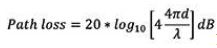 LPWANシステムの2つめの重要な要素は、国際的に免許不要のISM(Industrial, Scientific and Medical)周波数帯(886~906MHz)のサブギガヘルツ周波数を使うことです。このような(波長の長い)周波数での動作では、式1にしたがって自由空間伝搬損失が低減し、所定の送信電力に対する有効距離が延びます。