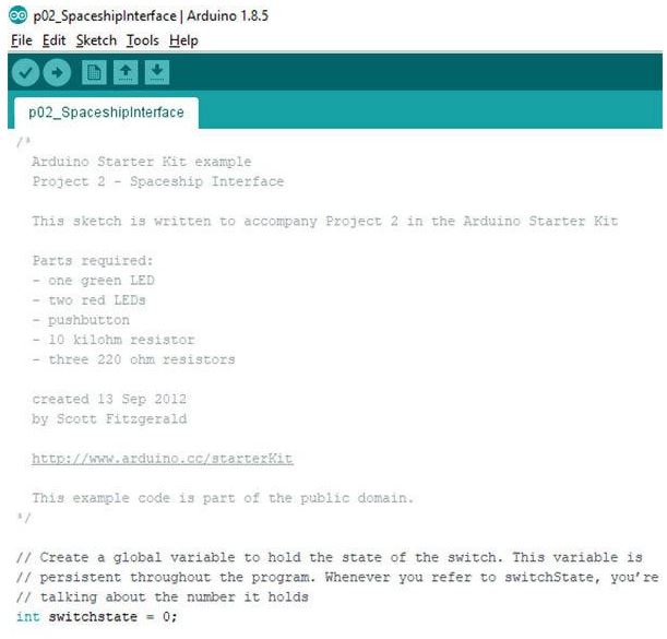 プロジェクト02では、ソフトウェアのコードに関する説明が続きます。このコードは、Arduinoでは「スケッチ」と呼ばれます。ここでは、スケッチで必要なすべての手順が取り上げられ、コードのステートメントの動作が説明されます(図5)。