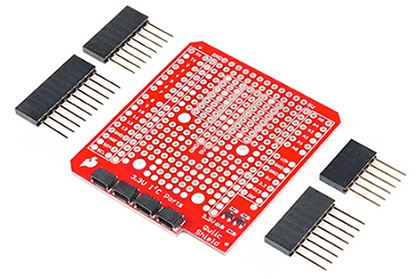 Qwiicアダプタは、Arduino R3シールドのレイアウトに適合しているため、開発者はQwiicアダプタキットに付属するヘッダで、独自のカスタム回路をPioneerキットボードとSparkFunのIoT Pioneerアドオンシールドの間にスタックできます。