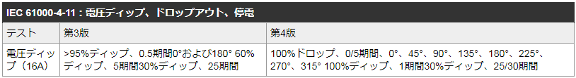 表4:電源変動に対するイミュニティ。