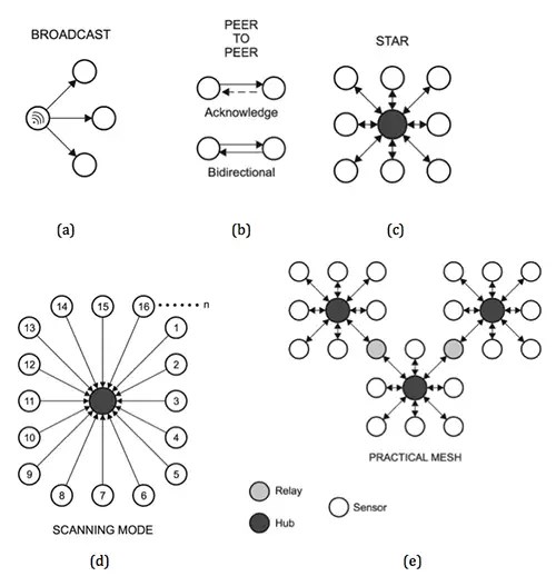 低電力ワイヤレステクノロジは、5種類の主要ネットワークトポロジをサポートします。