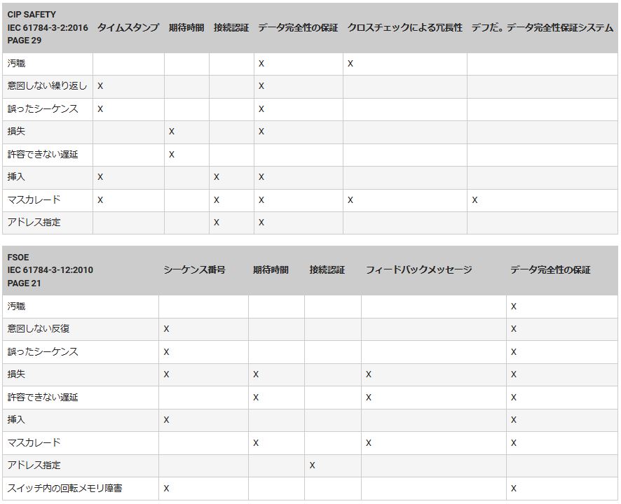 表1:CIP Safety(上)とFSoE(下)は、ネットワークエラーを処理するための異なるアプローチをサポートしています。(表出典:オムロンオートメーション)
