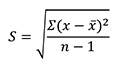 標準偏差sは、解析対象のフレームに含まれるデータの値の広がり方を示し、次の式から求められます。