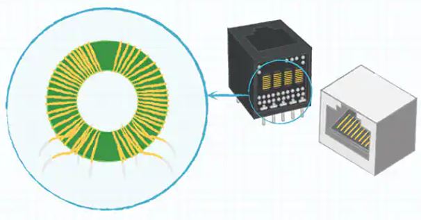 ・マグネティクス内蔵:xBASE-TネットワークのEMIシールドと接続信頼性を向上させます。ジャックの中にある巻線状の部品で、過渡からの保護、絶縁の提供、シグナルバランス、インピーダンスマッチングを行います。