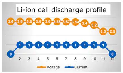 図1:一般的なLiイオン電池の放電サイクルプロファイルは、完全放電に近い状態までほぼ一定の出力電圧を示します。(画像提供:Eatonのエレクトロニクス部門)