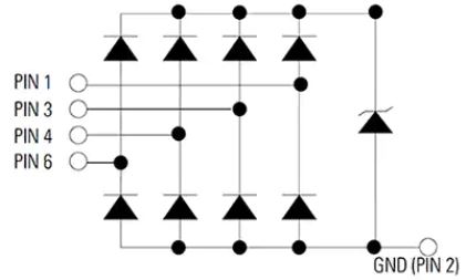 図10:SP3019-04HTGなどのダイオードアレイは、複数の高速I/OラインのESD保護を可能にします。(画像提供:Littelfuse, Inc.)